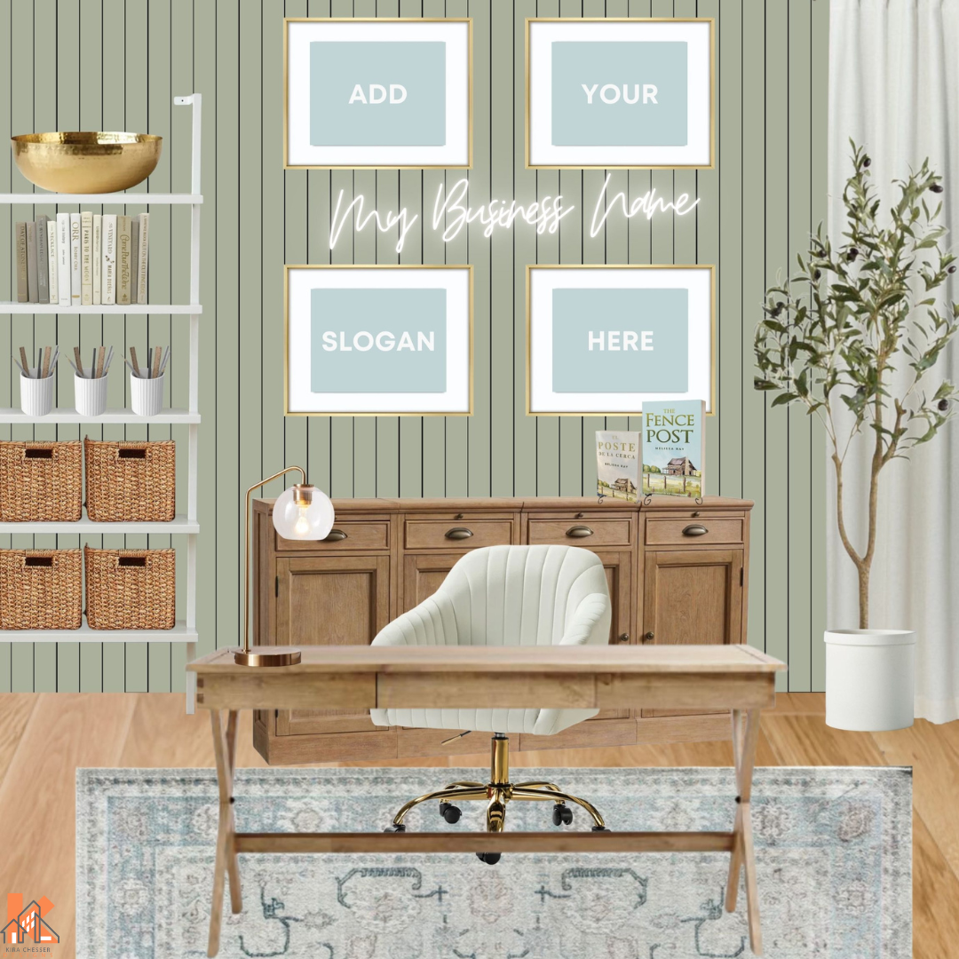 A bright, clean, lighthearted design for a home office to inspire your creativity.